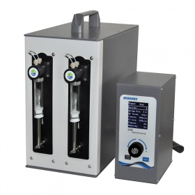 SYR 系列程控注射泵 / 分注器非常适合试剂的自动分注与转移 , 可以根据客户自定的速度和次序完成转移 ,可编程控制的分注阀门可以从 8 个 试剂瓶向同一反应器按设定次序转移不同试剂 , 或者将同一试剂分注导入 8 个反应器 , 客户可以使用控制软件完成自定义的复杂液体分注转移