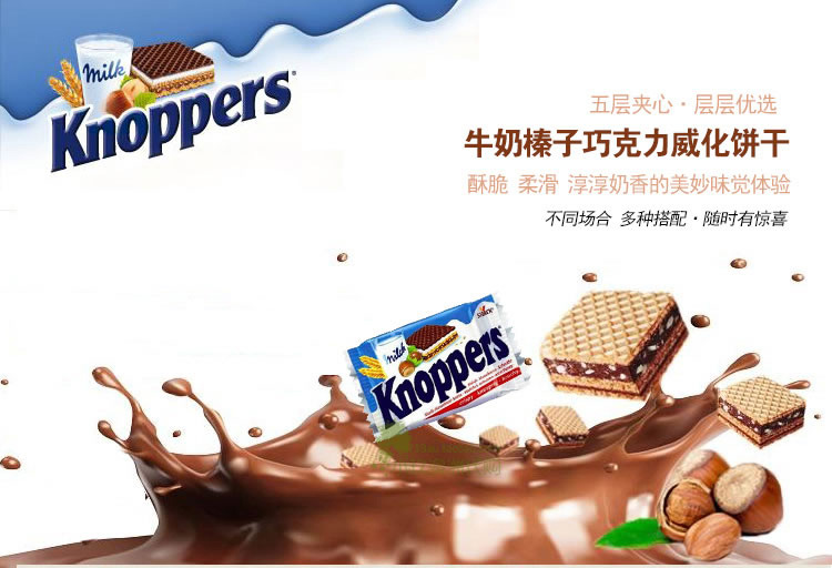 产品特点:德版 knoppers 牛奶榛子巧克力威化饼干10小袋 营养低脂