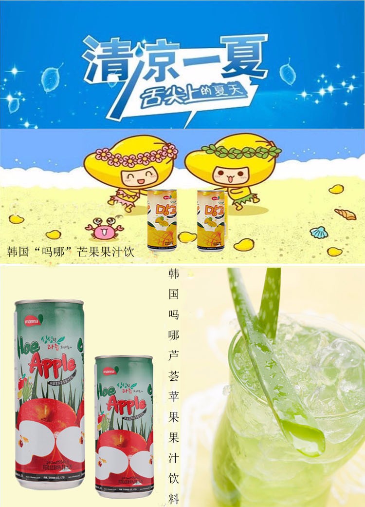 产品特点:韩国原装进口 吗哪果汁饮料240ml 7种口味