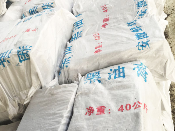 黑油膏:又称热法油膏,是植物油酸和亚油酸加其他材料,经过硫化等工艺精制而成,是橡胶的软化剂和填充剂,富有弹性和柔性的黑色海绵状固体。是一种硫酸化合物 。用作橡胶料的软化剂及辅助发泡剂,通常也具有增塑功能。也是制鞋类、橡胶模压杂件,内胎,发泡与押出产品等产品的一种主要原料。使用油膏时可以考虑油品用量的减少,硫化体系考虑安全平坦期的调整。在海绵体系中对压歪变有一定的影响,合理用量会大大提高抗压歪变的能力。