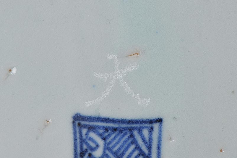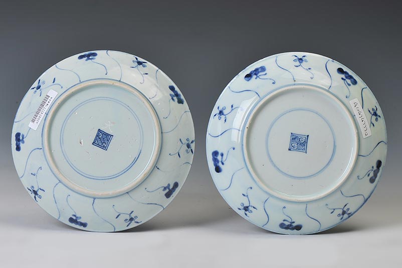 清雍正 里外绘青花灵芝花卉多宝轮纹盘两只